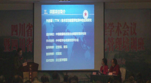 會議期間,陳剛主任詳細介紹了“熱斷層(TTM)技術在體檢人群疾病篩查及風險評估中的應用”多中心研究項目,該項目是由中國健康促進基金會委托、中國健康促進基金會健康管理研究所牽頭、中華醫(yī)學會健康管理學分會進行學術支持,于2013年9月在“第三屆全國健康管理示范基地建設研討會”上正式發(fā)布,課題的學術指導專家由中華醫(yī)學會健康管理學分會主任委員武留信教授、中華醫(yī)學會健康管理學分會候主任委員曾強教授擔任,其目標為旨在促進熱斷層(TTM)技術在體檢人群疾病篩查及風險評估中的應用發(fā)展。此項目通過利用熱斷層(TTM)技術,經過大量臨床研究和分析,對乳腺疾病、肺部疾病、肝臟疾病、心血管疾病、腦血管疾病和甲狀腺疾病等健康管理項目進行檢測監(jiān)測、風險預測、預警與評估,建立熱斷層(TTM)在健康管理和體檢應用中的診斷標準、風險評估及早期干預等技術行業(yè)規(guī)范等目的。本項目的技術支持由貝億醫(yī)學國際提供。