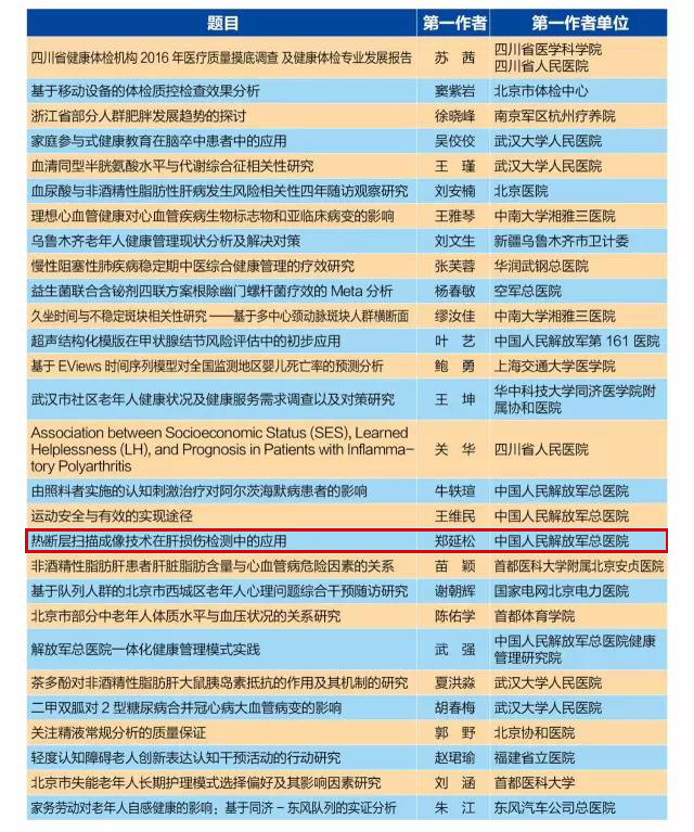 第十一屆中國健康服務(wù)業(yè)大會(huì)暨中華醫(yī)學(xué)會(huì)第九次全國健康管理學(xué)學(xué)術(shù)會(huì)議論文評(píng)審公示順利結(jié)束,期間共收到投稿3633篇,經(jīng)過15個(gè)小組的審稿專家審稿以及8月8日的終審會(huì)評(píng)審,大會(huì)共評(píng)選出優(yōu)秀論文28篇,青年優(yōu)秀論文34篇,優(yōu)秀提名145篇。